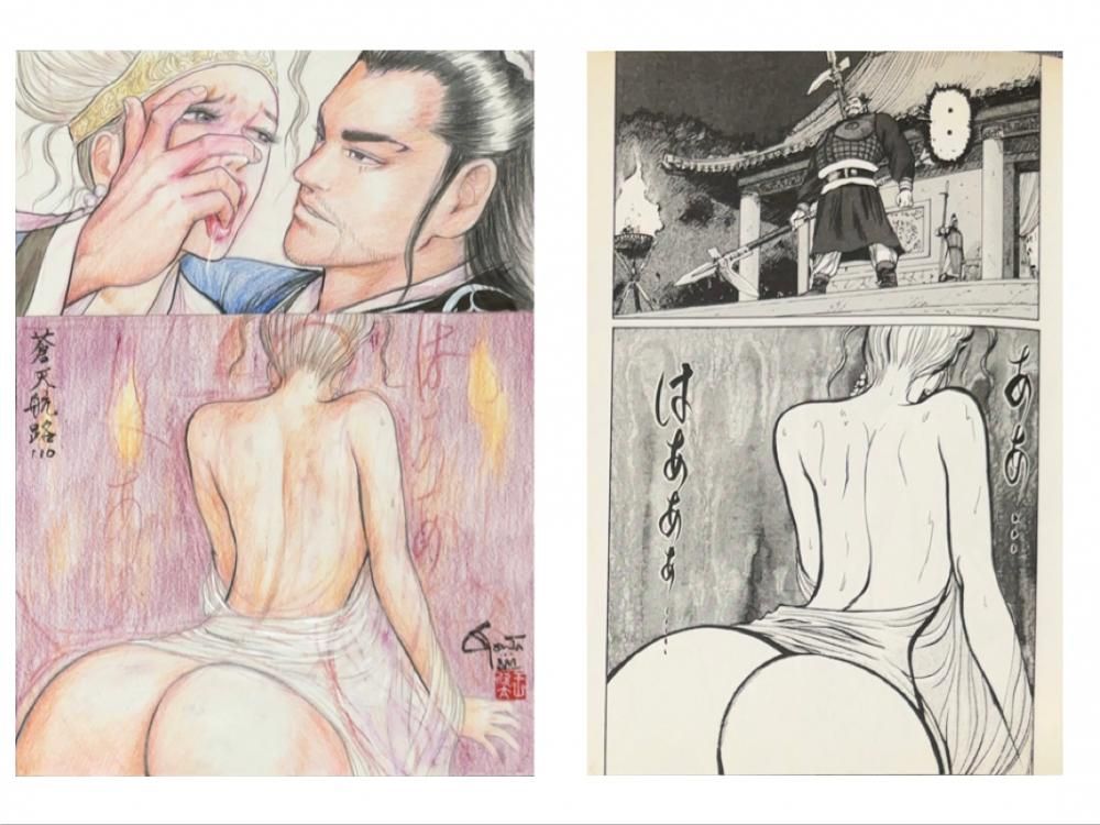 欣太先生が選んだ、蒼天航路のネーム「その110/ 三つ星の夜 P.8,15」に、欣太先生が"画"と思えるレベルまで加筆して仕上げたネーム画、GONTA MECCAプロデュースの一点ものです。色鉛筆を多く加えた画をマットにセッティングしてフレーミングいたしました。欣太先生直筆のサイン・落款入り。写真3枚目の左が加筆後のネーム画、右が同頁の原稿です。
